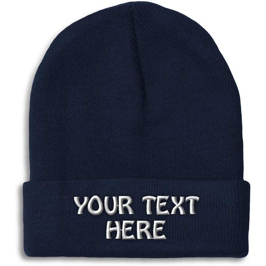 Winter Hat Beanie for Men & Women Custom Personalized Text Acrylic Skull Cap Hat(Navy)