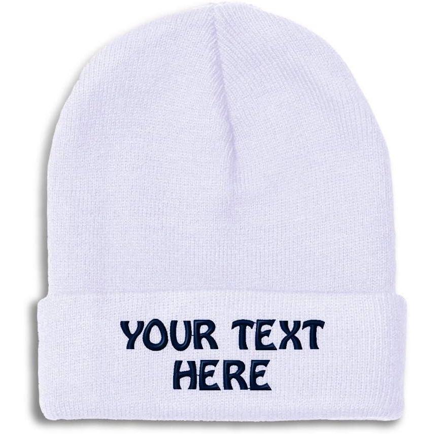 Winter Hat Beanie for Men & Women Custom Personalized Text Acrylic Skull Cap Hat(White)