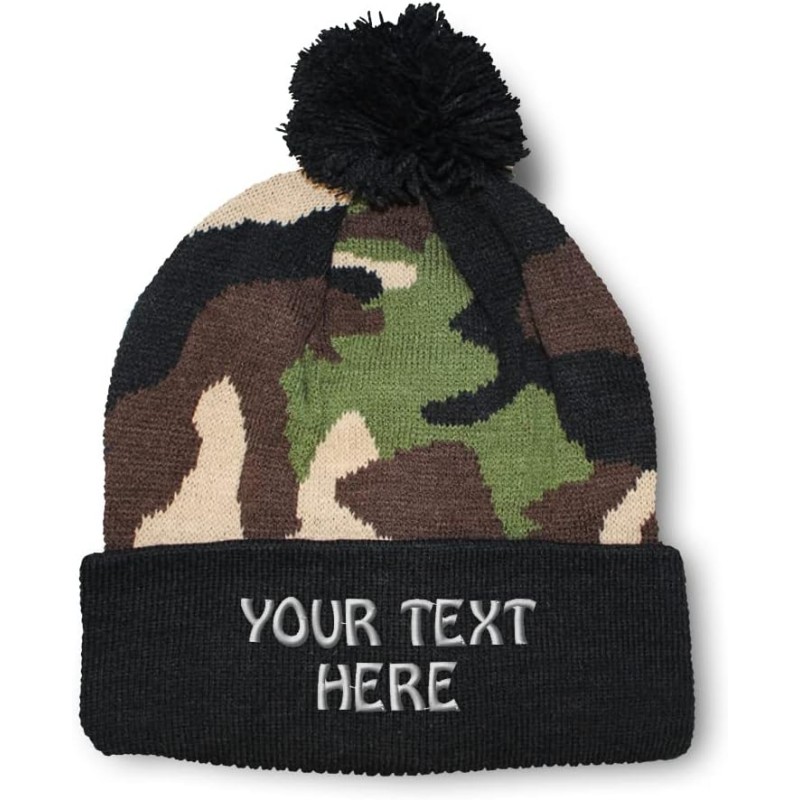 Winter Hat Pom Pom Beanie for Men & Women Custom Personalized Text Skull Cap Hat(Camo)
